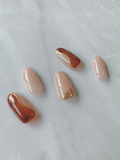 ノンサンディングジェル使用、フィルイン対応の為、自爪を削らず、ベースを一層残しデザインを変えていく事で、お爪に優しく負担がない状態で、ネイルをお楽しみいただけます。